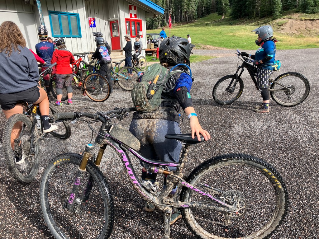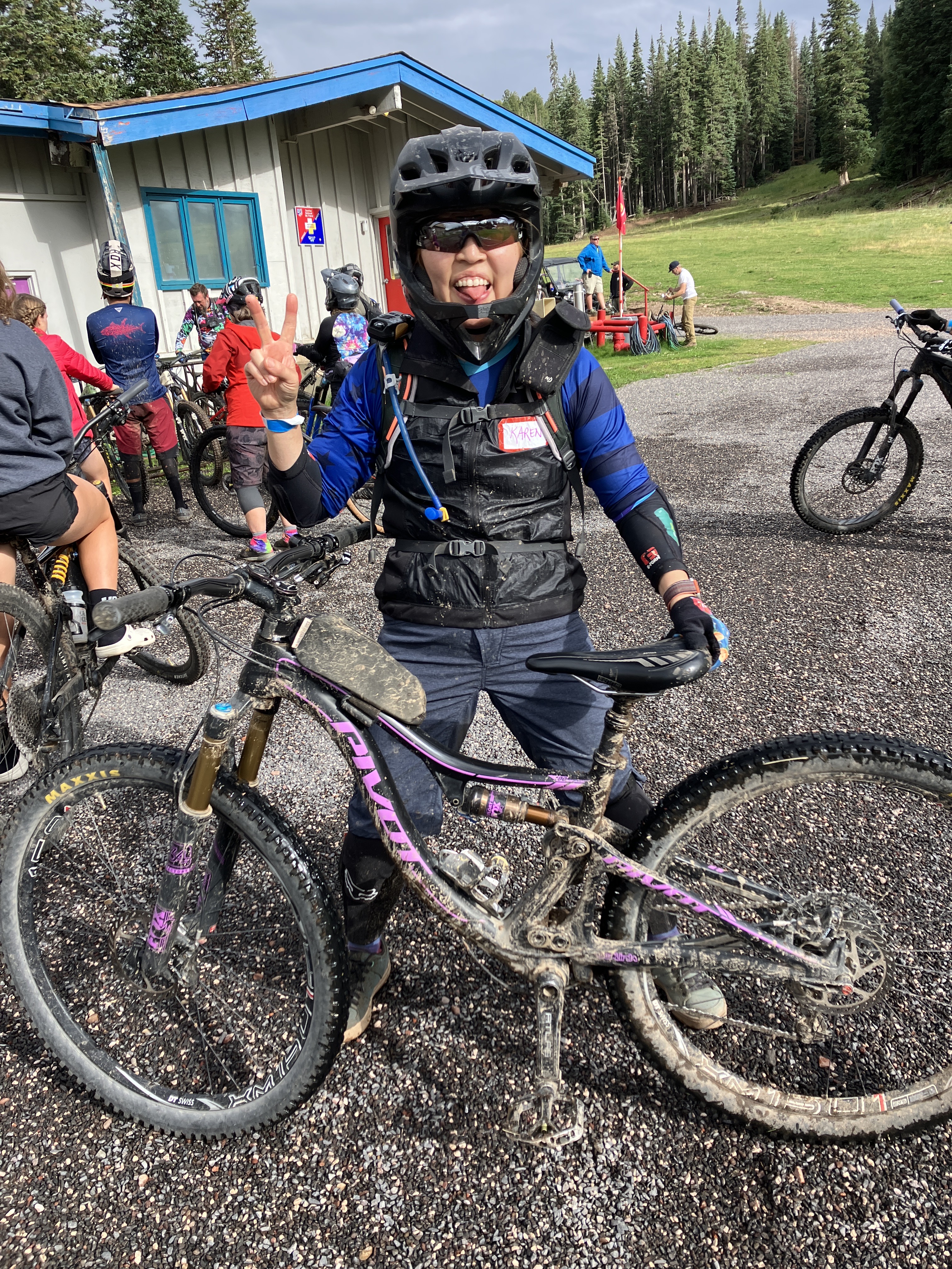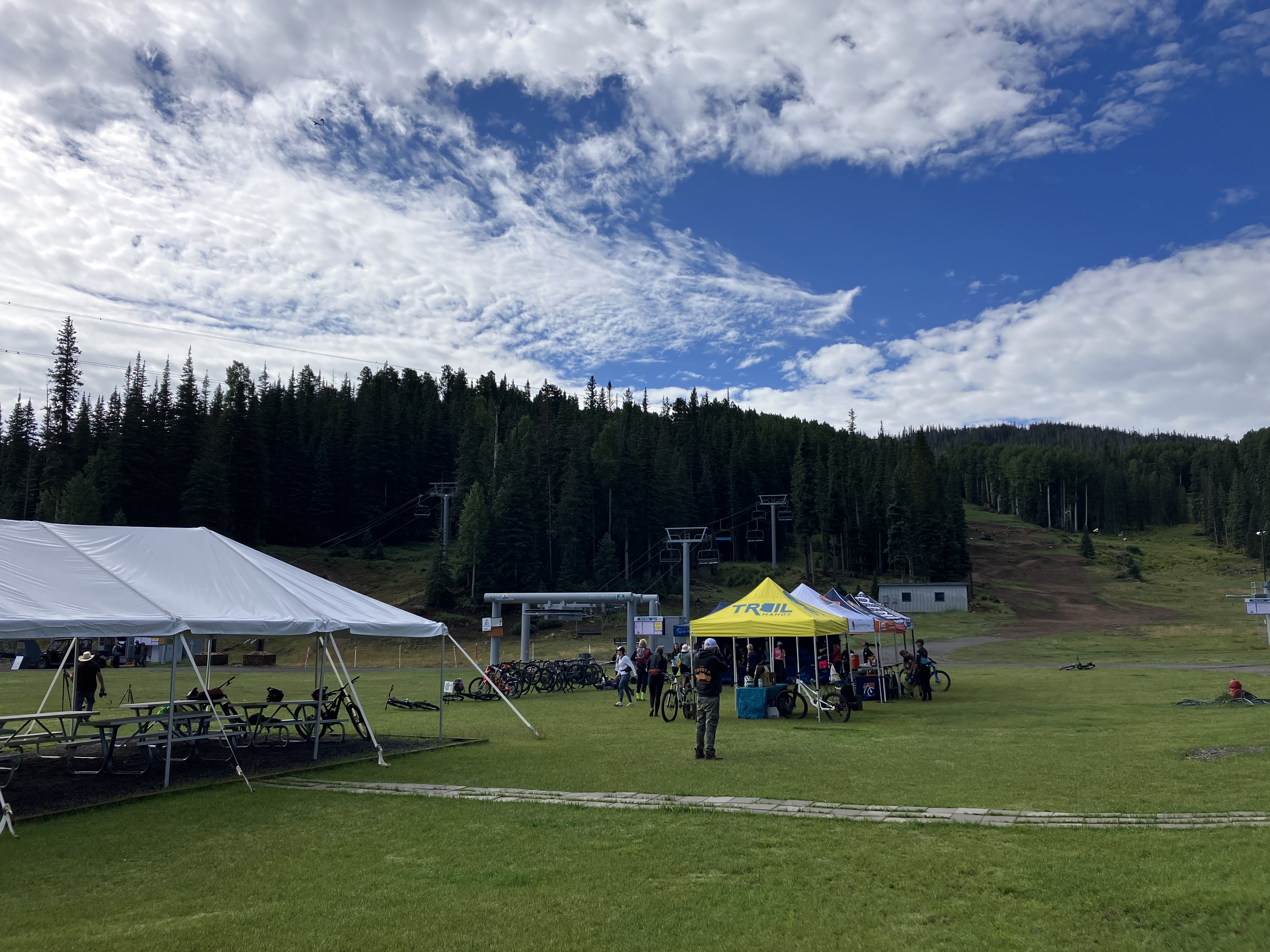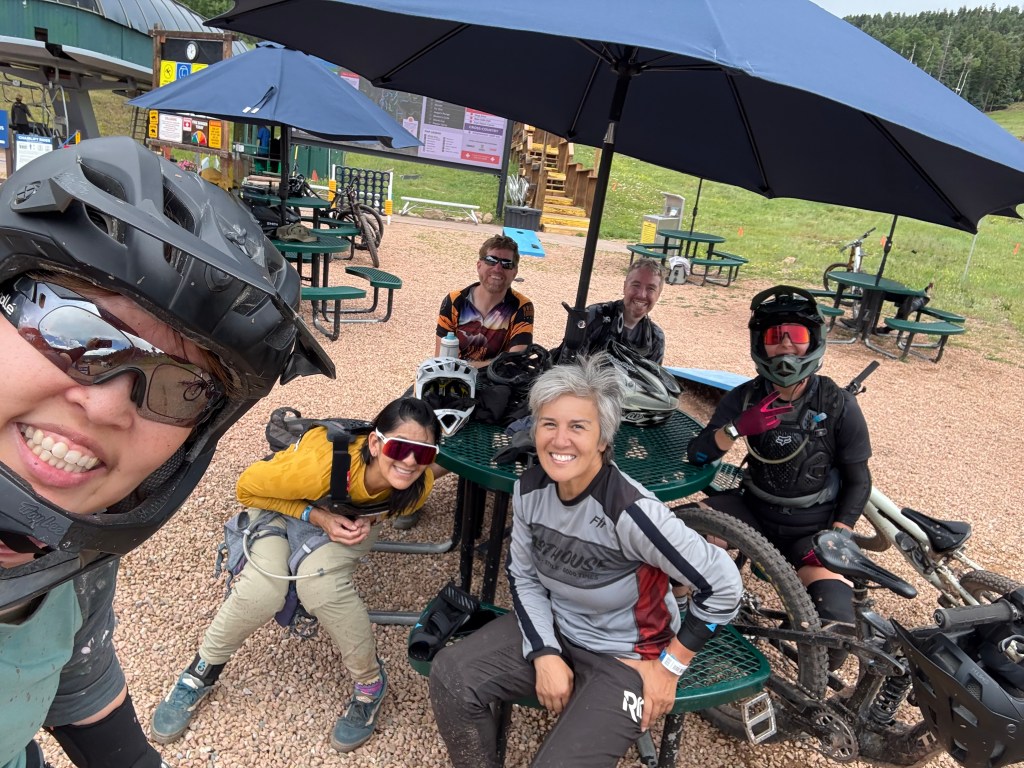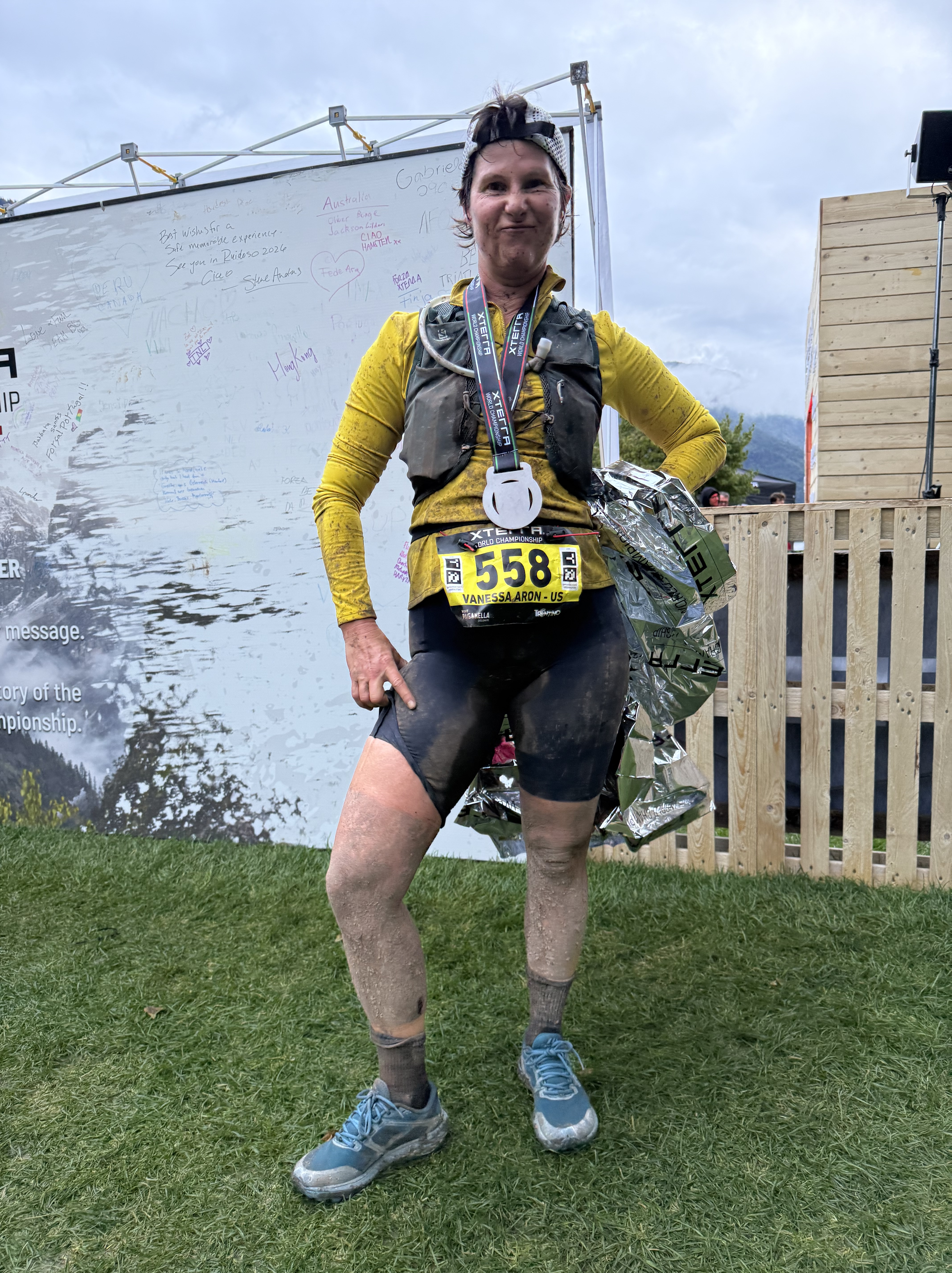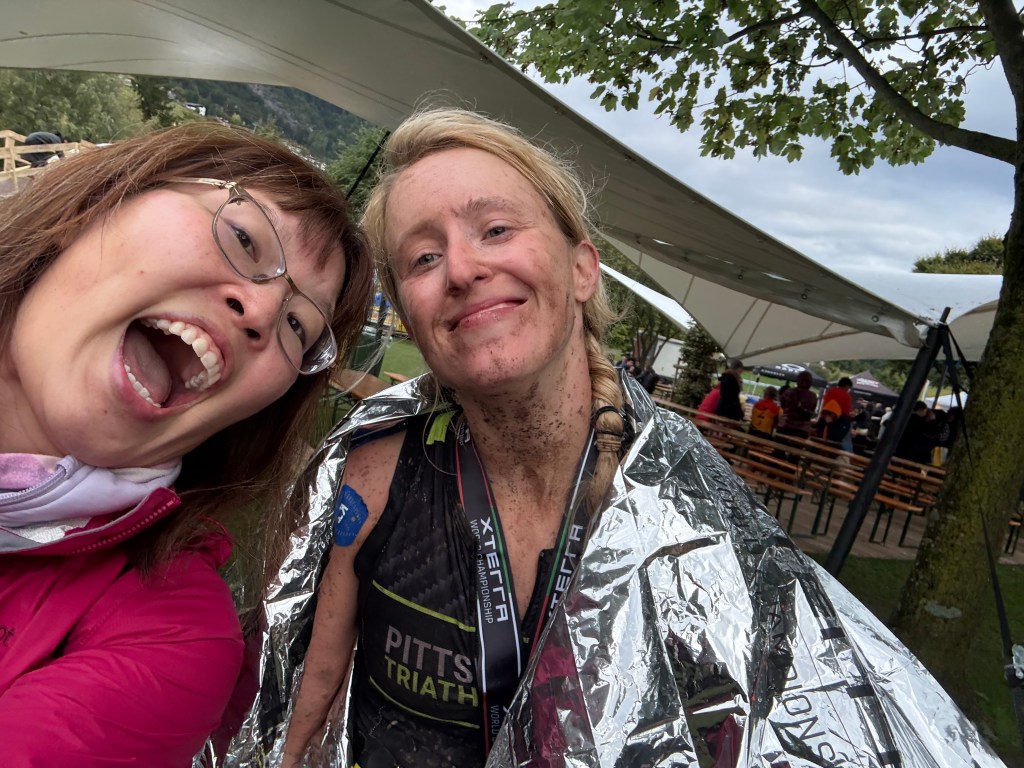 After my hike, I took the gondola down to the village and walked back to the hotel to shower. Then I made my way over to the finish line to cheer Alex and Vanessa through the end of the race….little did we know that the bad weather would significantly impact their performance. The heavy rain and mud slowed most of the racers’ progress and I ended up waiting an hour and a half for my friends to cross that finish line. But they did and I got photo evidence! I saw lots of racers finish while waiting for Alex and Vanessa and to be honest, a lot of them looked pretty miserable and MUDDY. I’m glad I didn’t have to race!