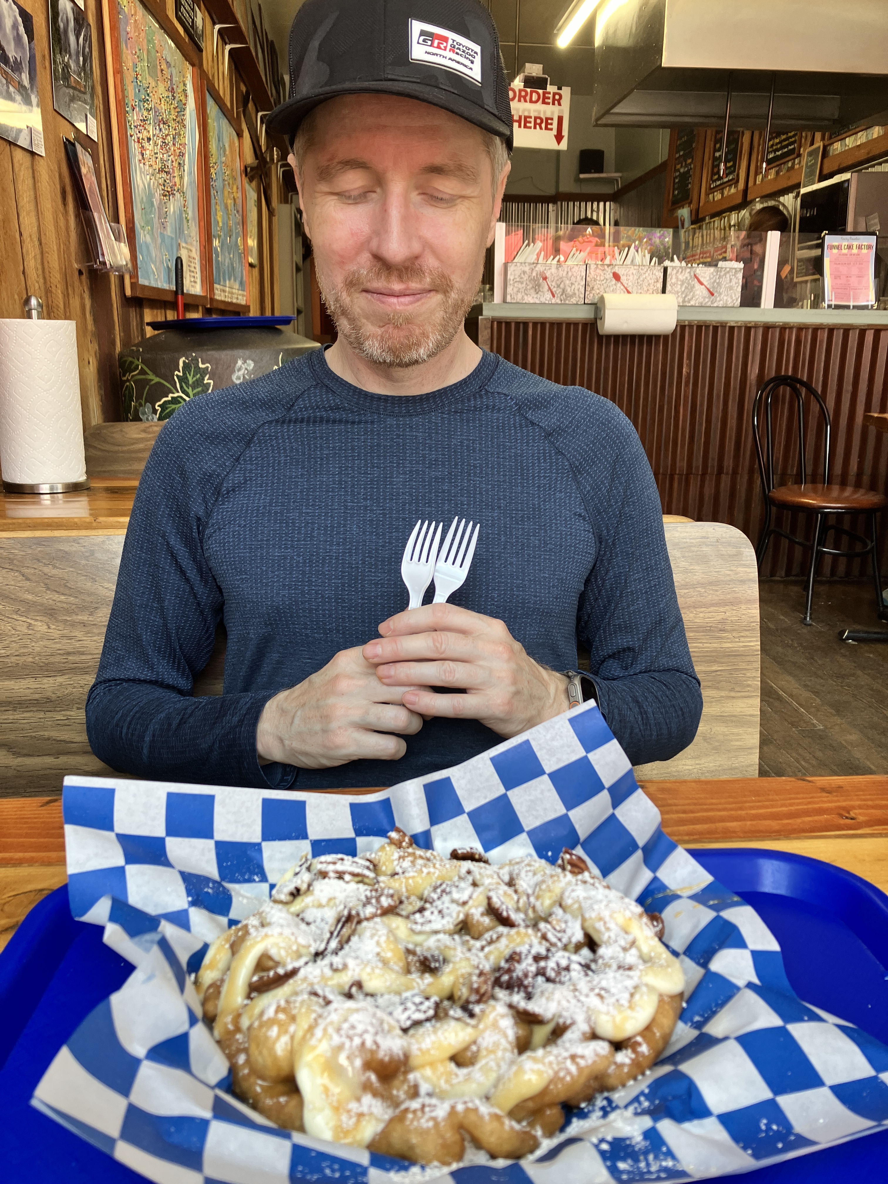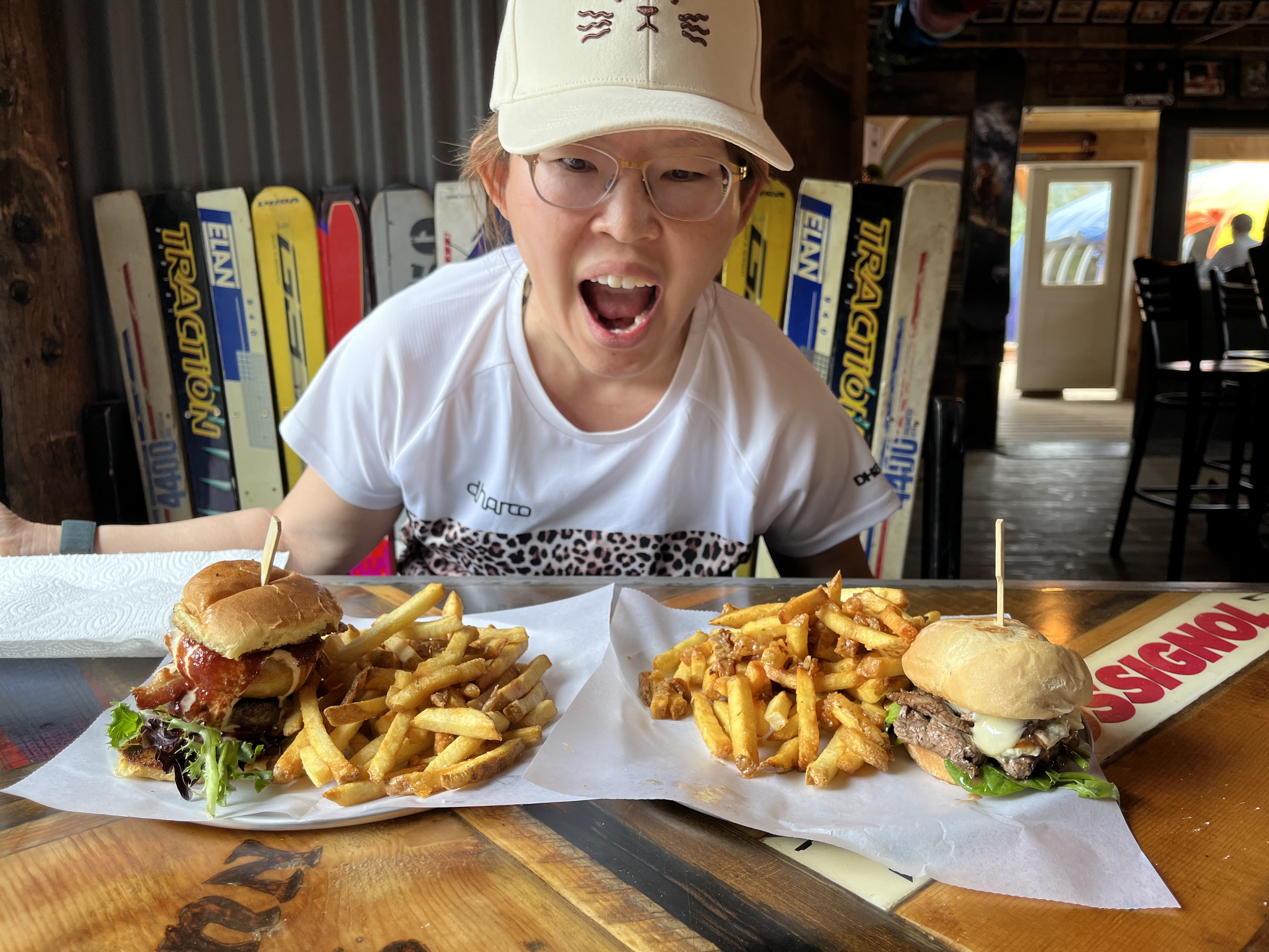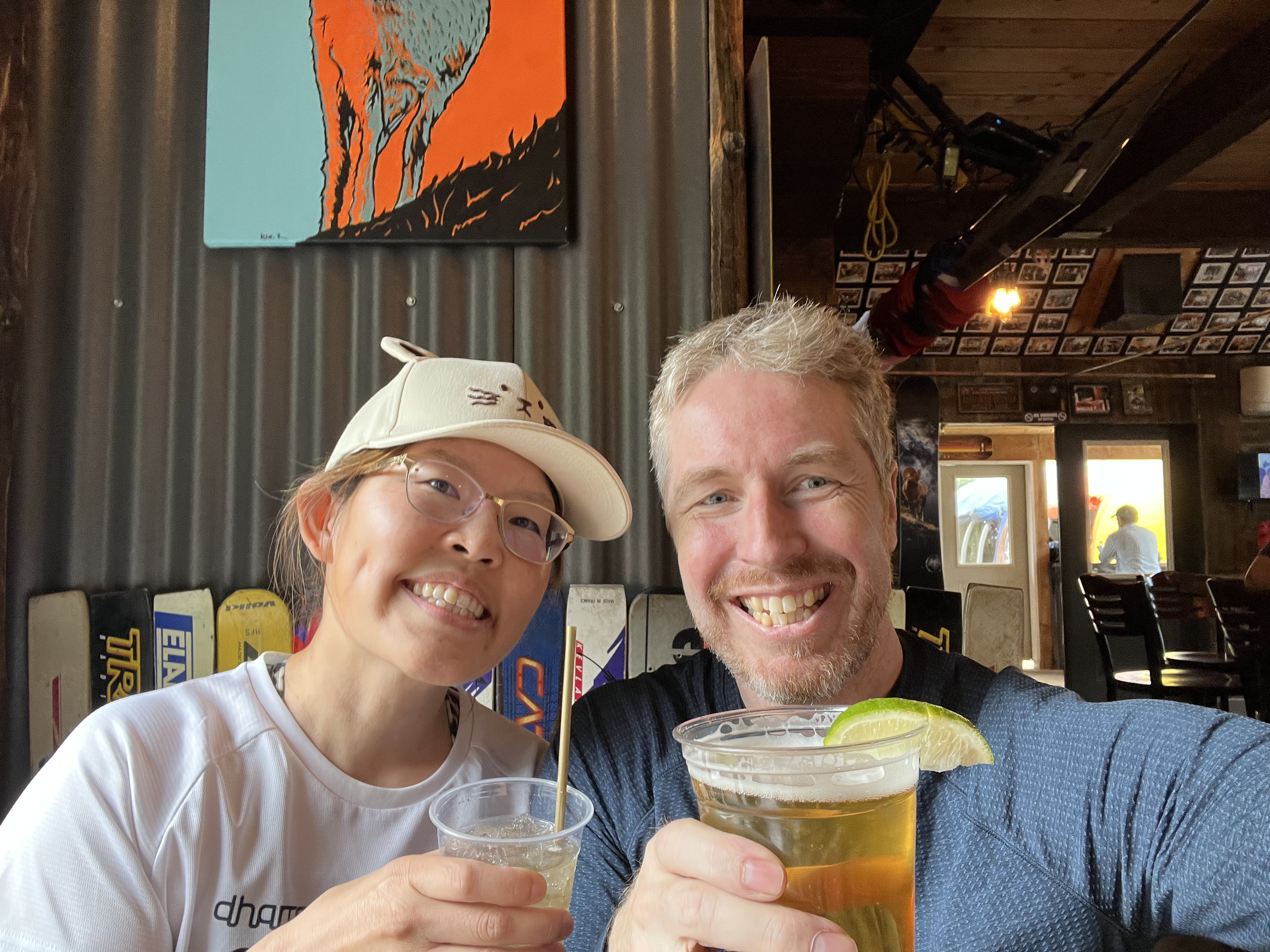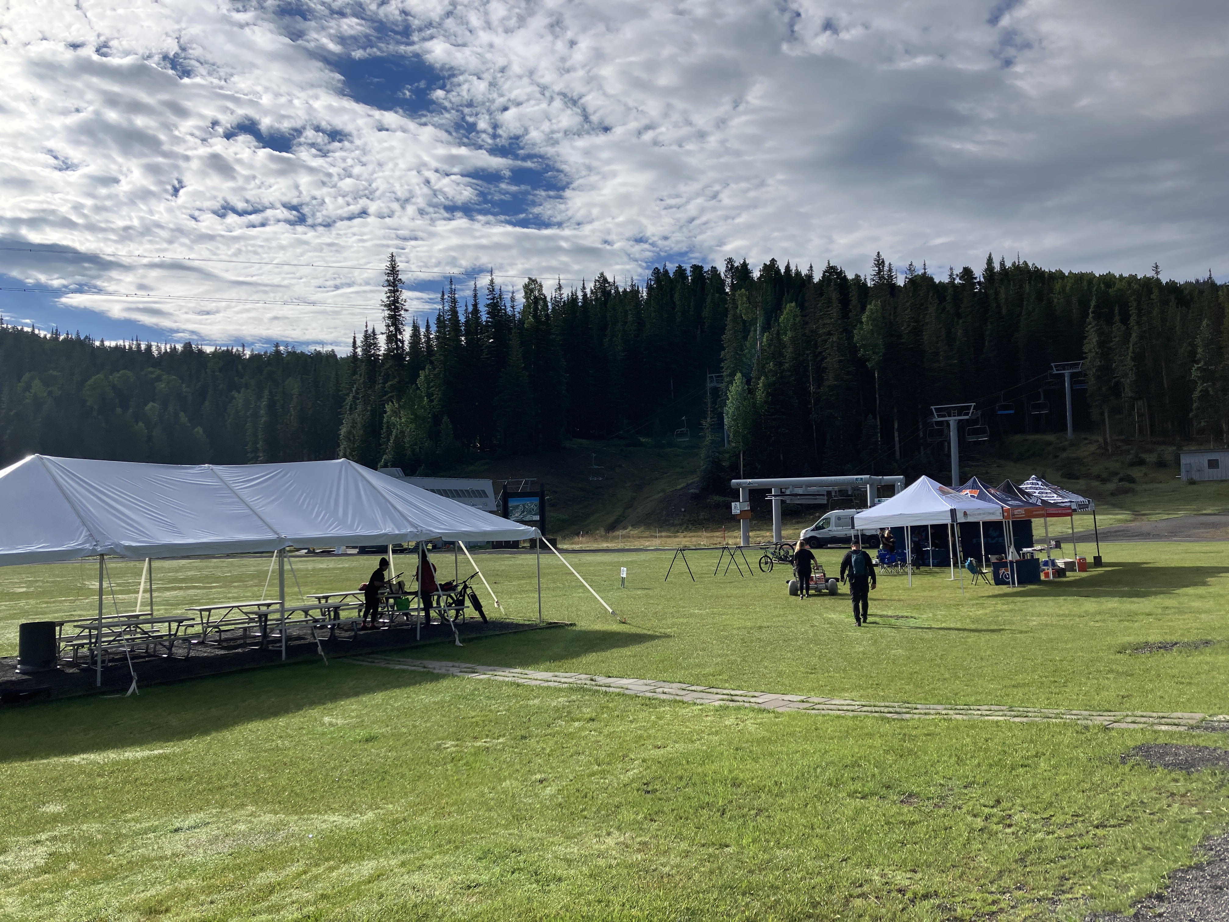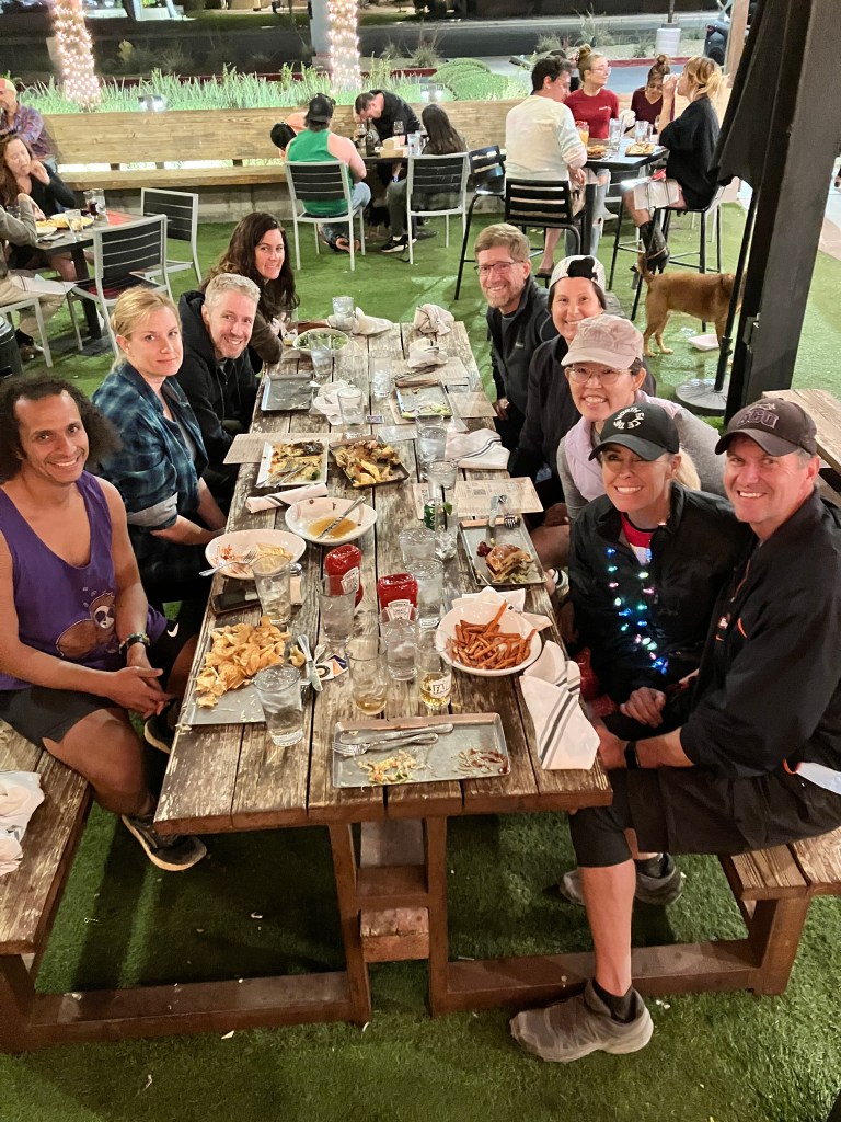 After my hike, I took the gondola down to the village and walked back to the hotel to shower. Then I made my way over to the finish line to cheer Alex and Vanessa through the end of the race….little did we know that the bad weather would significantly impact their performance. The heavy rain and mud slowed most of the racers’ progress and I ended up waiting an hour and a half for my friends to cross that finish line. But they did and I got photo evidence! I saw lots of racers finish while waiting for Alex and Vanessa and to be honest, a lot of them looked pretty miserable and MUDDY. I’m glad I didn’t have to race!
