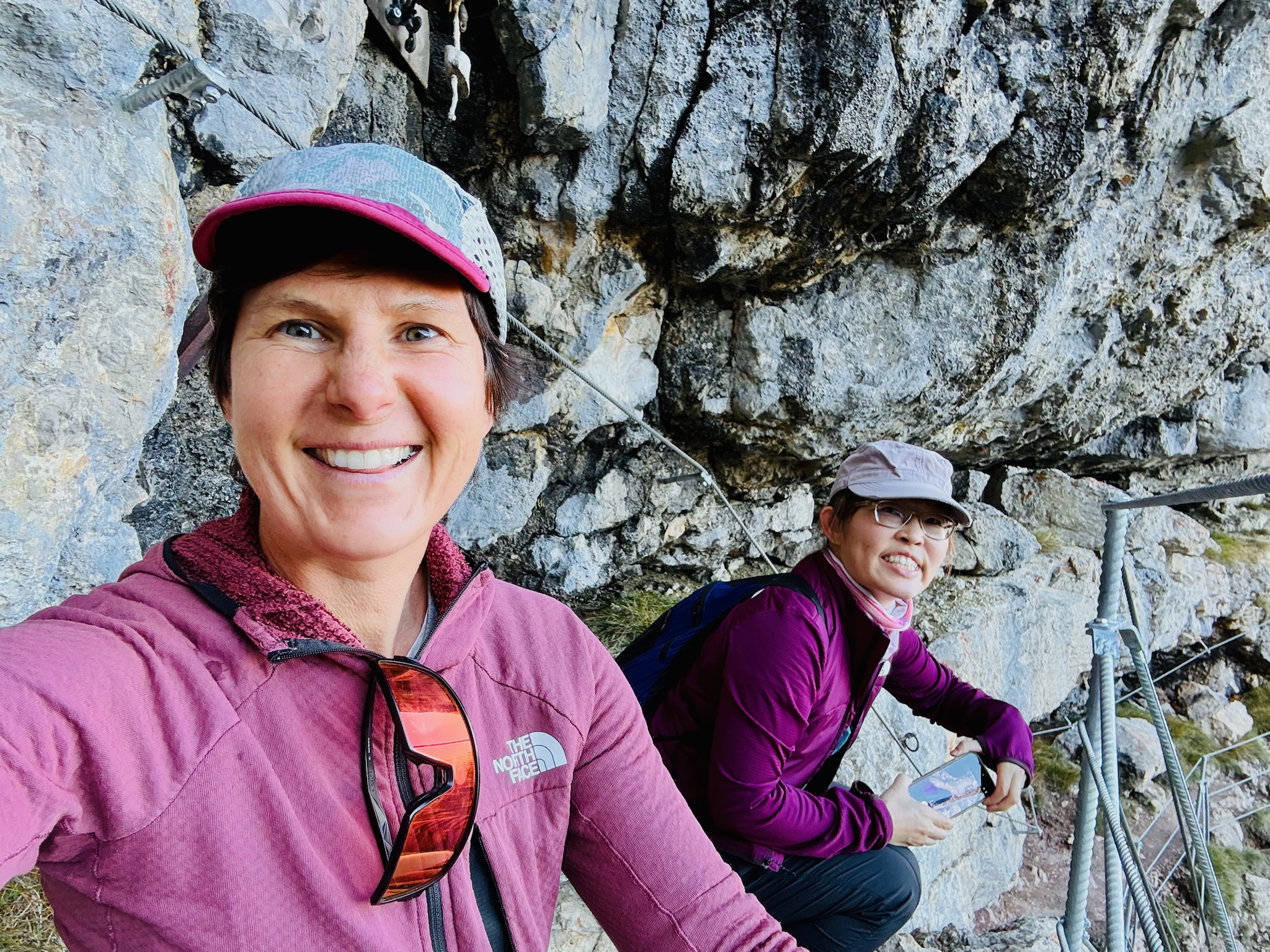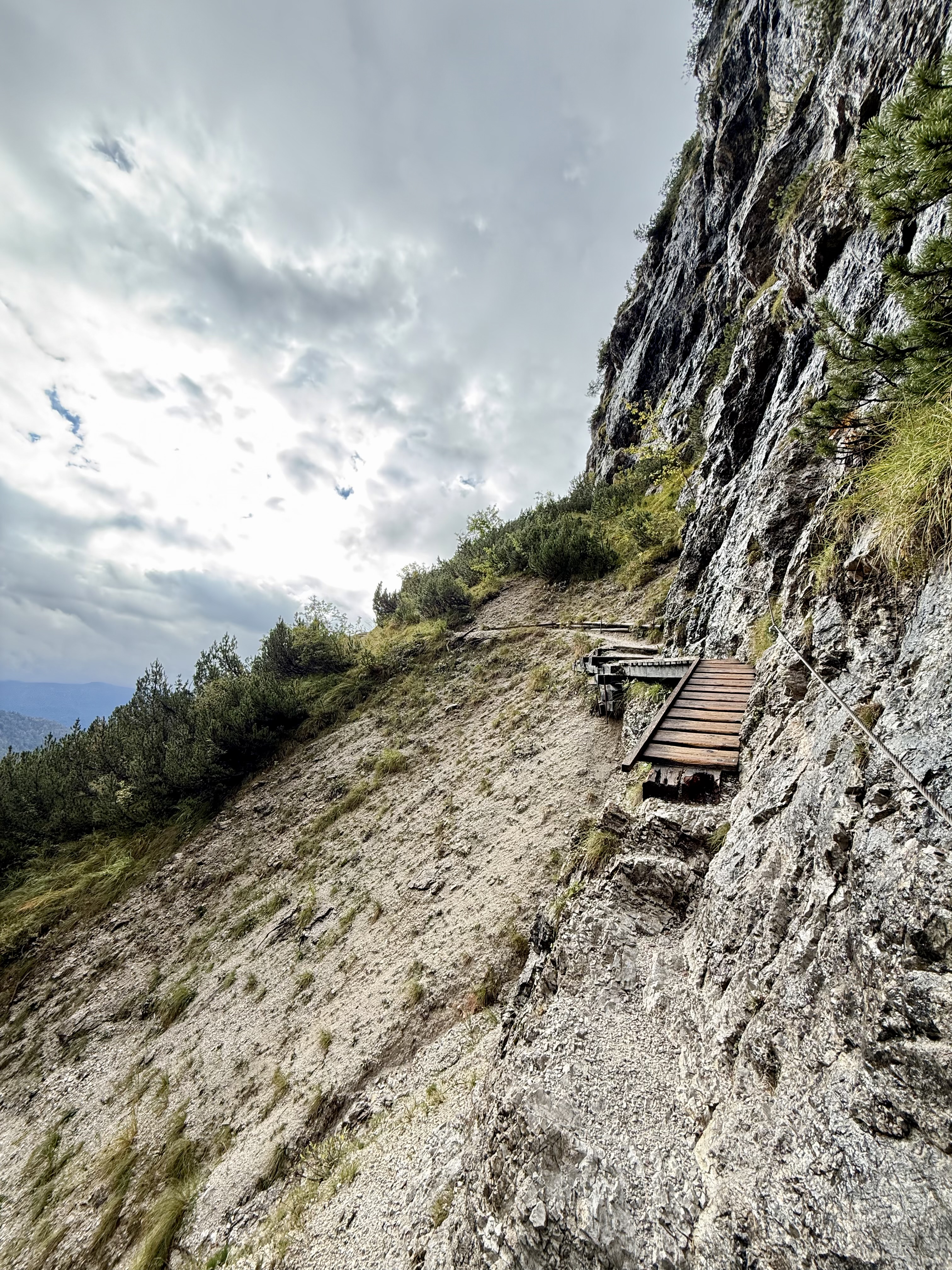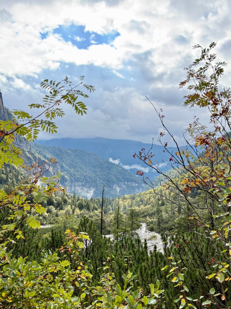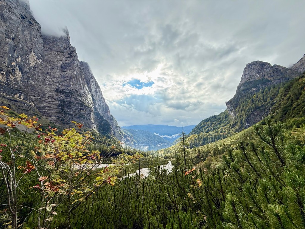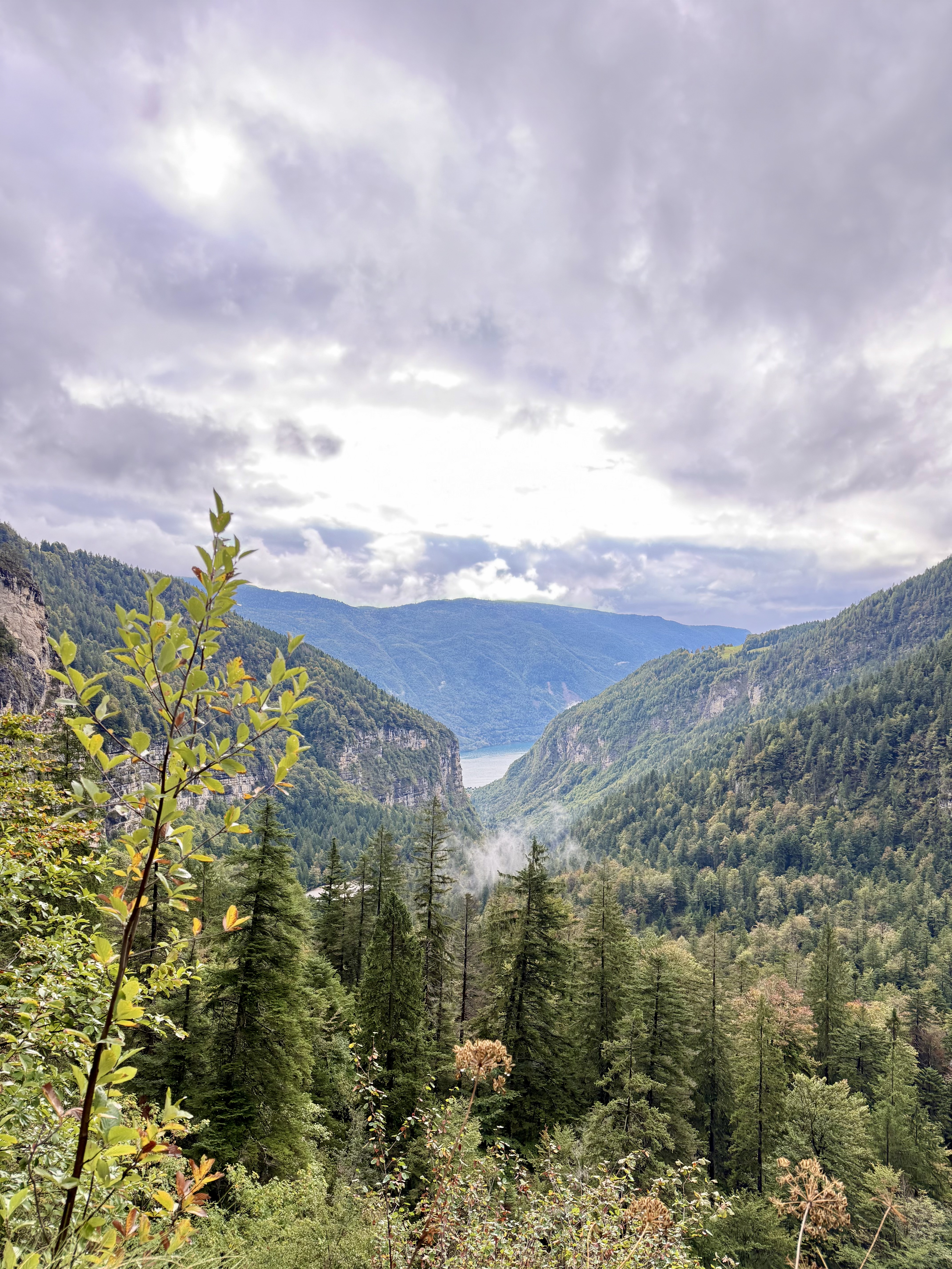 Race day! Which means hike day for me, haha. Like yesterday, I took the Molveno gondola to the top and then started hiking the “3 Rifugio” hike. It was raining for most of the hike, but that didn’t deter me! I brought an umbrella and wore a rainjacket, so was prepared. The hike was super pretty and a little slippery in some parts. There was even a short “via ferrata” (Italian for “iron path”) section that featured a steel handrail bolted to the rock wall. That handrail is to provide some support along the exposed part of the trail. I can’t say enough about how beautiful the hike was, so I’ll let the pictures speak for themselves.