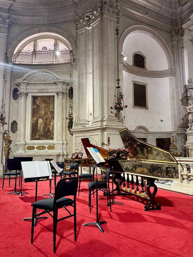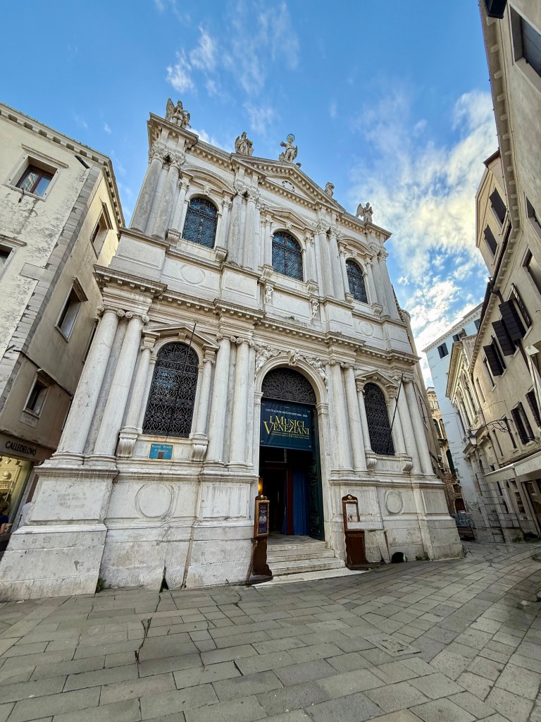 After landing in Venice and going through passport control, I meet my friend Vanessa. She rented a cute teal Audi 🙂 She said she had to find a replacement strap for her backpack and wanted to go to a shop nearby….which meant that the first thing I did in Italy was go to an outlet mall! Haha! After that errand was done, we parked the car in a 24 hour parking lot then took the bus to the main island, i.e., the part of Venice that everyone knows from movies and television. We got off the bus at the main terminal and started walking around. I felt like my mouth was open much of the time because everything around me was so beautiful. So many historic buildings and gondolas! We made our way to our Airbnb, checked in, then my body told me it was nap time. Vanessa went out for more sightseeing while I enjoyed a much-needed nap. Upon her return, we walked over to the Chiesa della Pietà for a Vivaldi concert. That was extremely gratifying for a music nerd like me; listening to Vivaldi’s “Four Seasons” in the church he worked in was pretty amazing. The concert was a lovely way to end my first day in Italy.