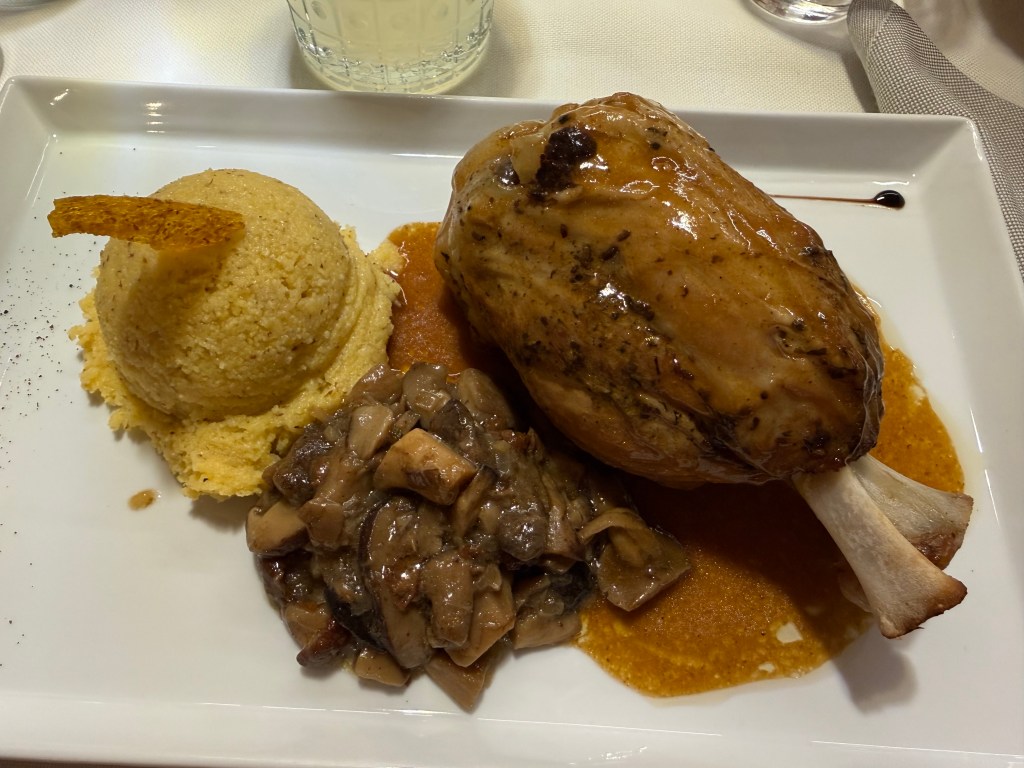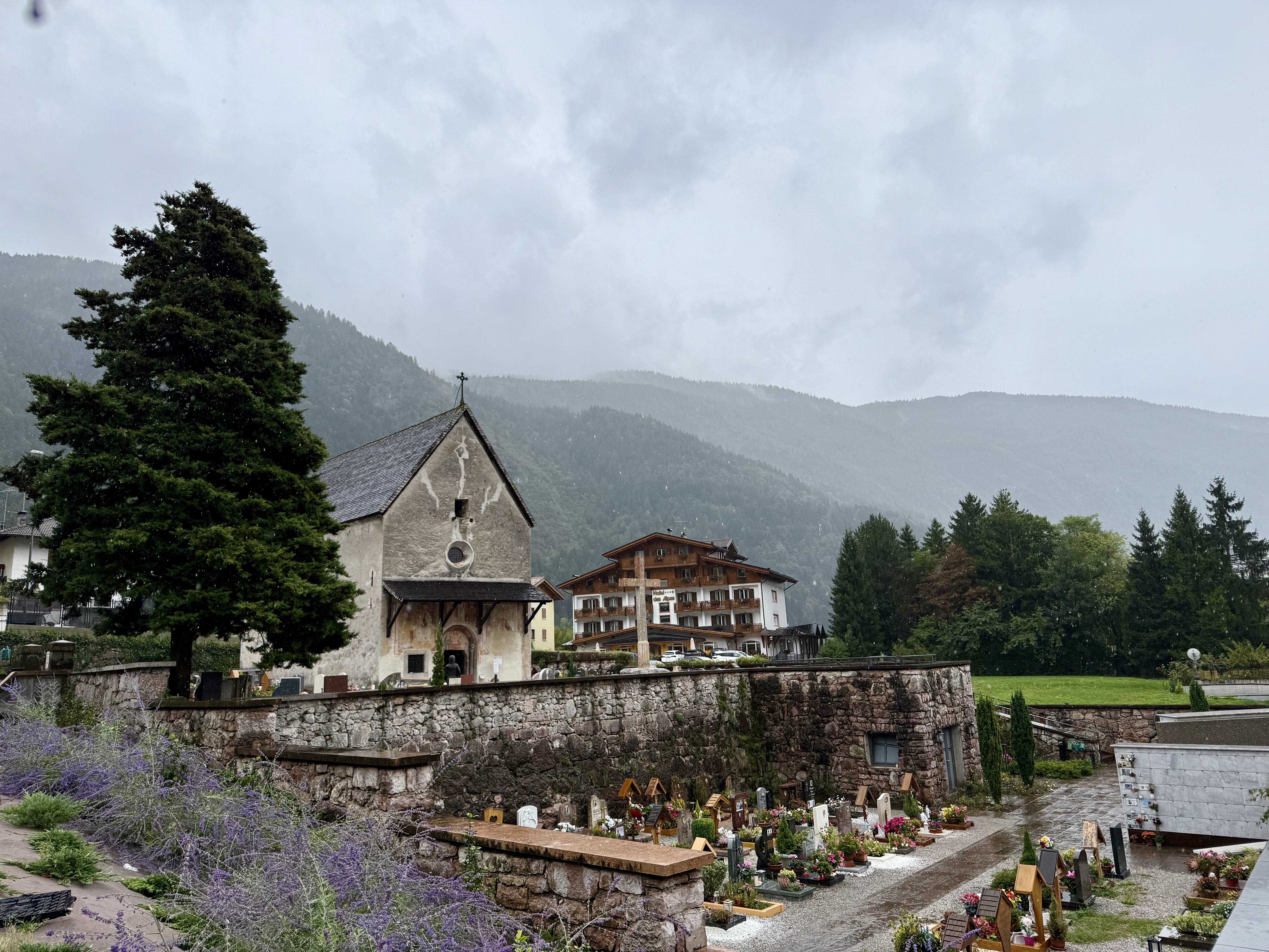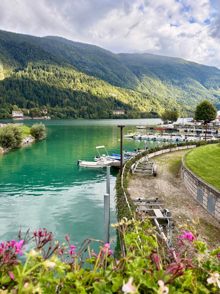 One thing I wanted to do while in Italy was go to Catholic mass. Although I was raised Catholic, I do not identify as such anymore. However, I thought going to mass would be a neat way to experience some culture and revisit a piece of my childhood. Vanessa and I went to morning mass at one of Molveno’s many (it seemed) churches and I really enjoyed it! I even understood most of it because the structure of the ceremony hasn’t changed in hundreds of years and the internet is very helpful at providing translations! After mass, we drove to Andalo, a neighboring village, and took THAT gondola up to the top and hiked around. We enjoyed a delicious mountaintop lunch at a rifugio with gorgeous views. After lunch, we checked out some castle ruins at Castel Belfort then ended our day with some gelato close to the hotel.