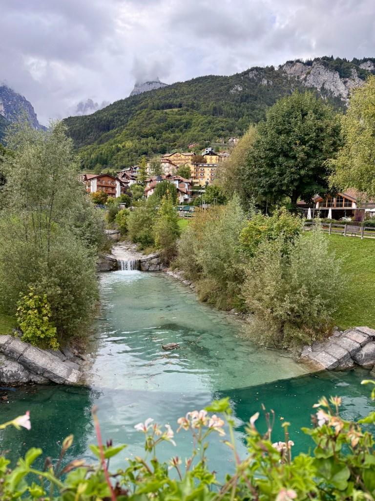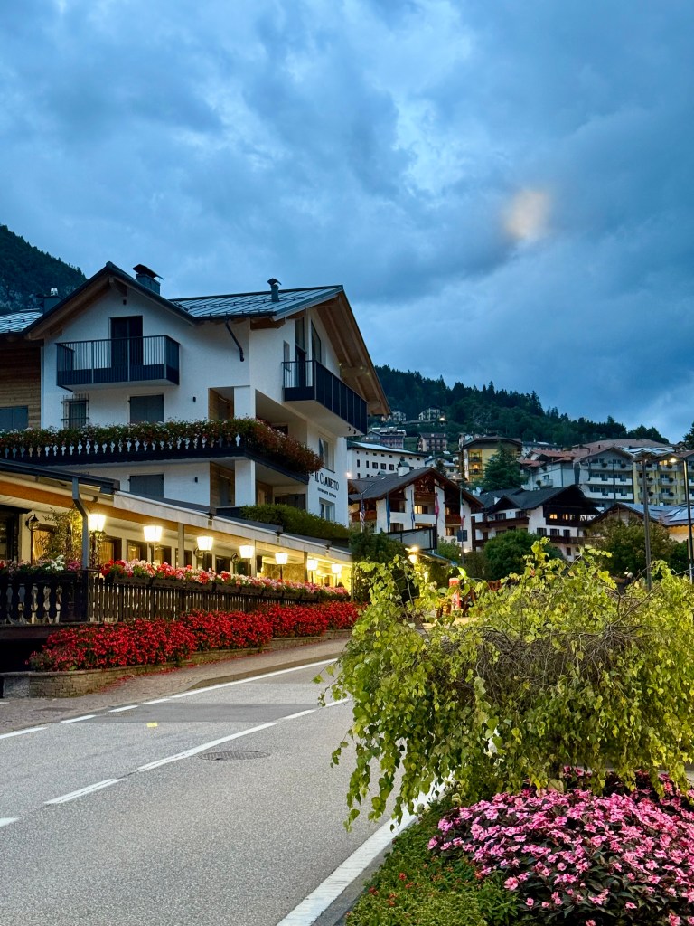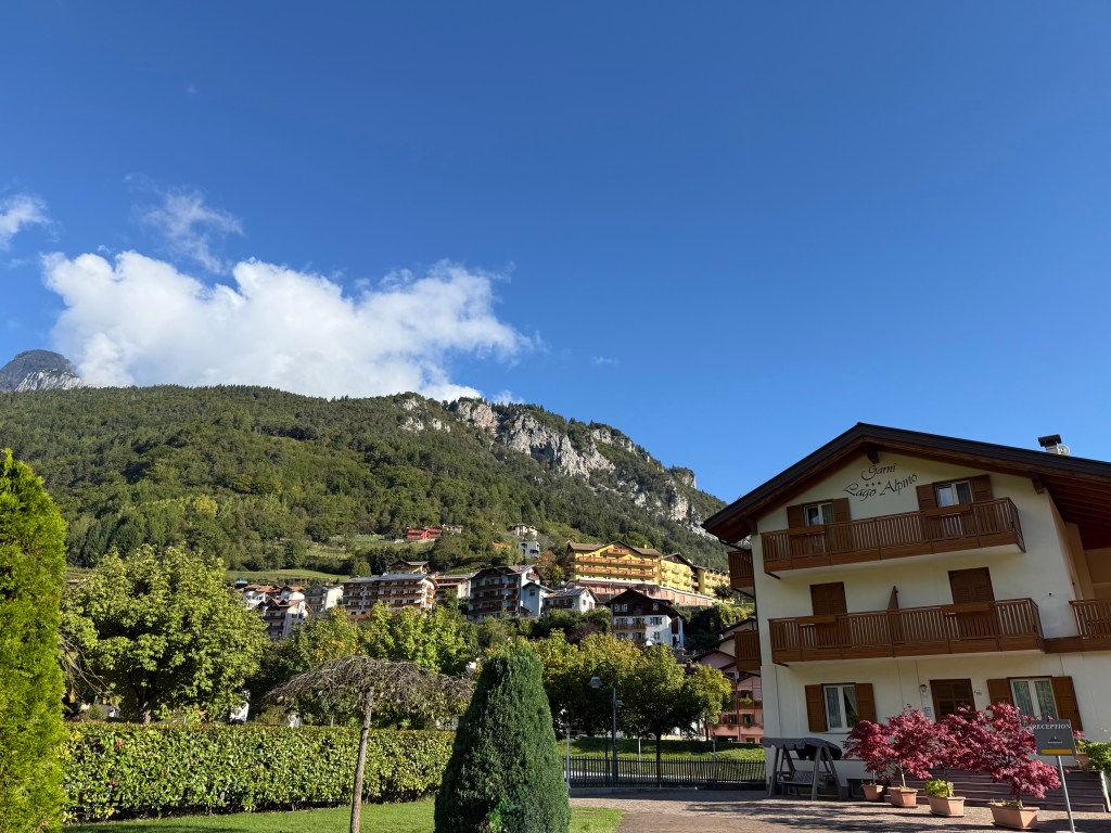 After getting some coffee, we drove to Verona and explored the historic inner city. We found Juliet’s balcony (Ã la “Romeo and Juliet”) and tried some horsemeat for lunch, which is a regional delicacy. (It does not taste like chicken.) After lunch, we drove to Molveno, an alpine village in the Trentino area, famous for its gorgeous lake and location at the foot of the Dolomite mountains. All that natural beauty makes Molveno the perfect place to host a triathlon! This area is jaw-droppingly gorgeous and provides so many opportunities to enjoy ALL the outdoor activities. When we arrived, we checked into our hotel (Garni Lago Alpino) and met up with our friend, Alex, who was also racing the triathlon. While Alex and Vanessa were at the opening ceremonies, I treated myself to some Italian pizza, a long shower, and a FaceTime call with my SAT (self-appointed trainer, i.e., husband).