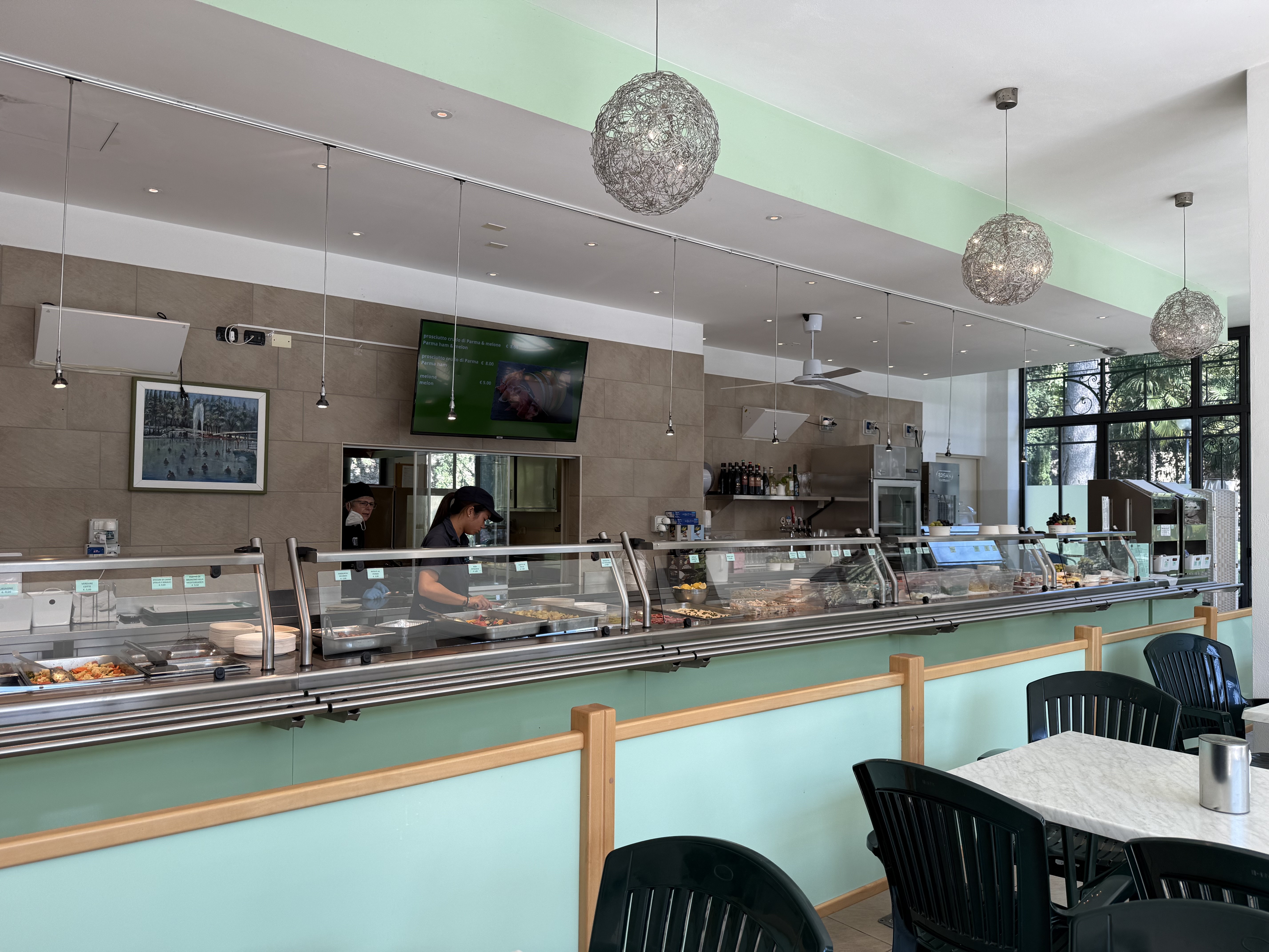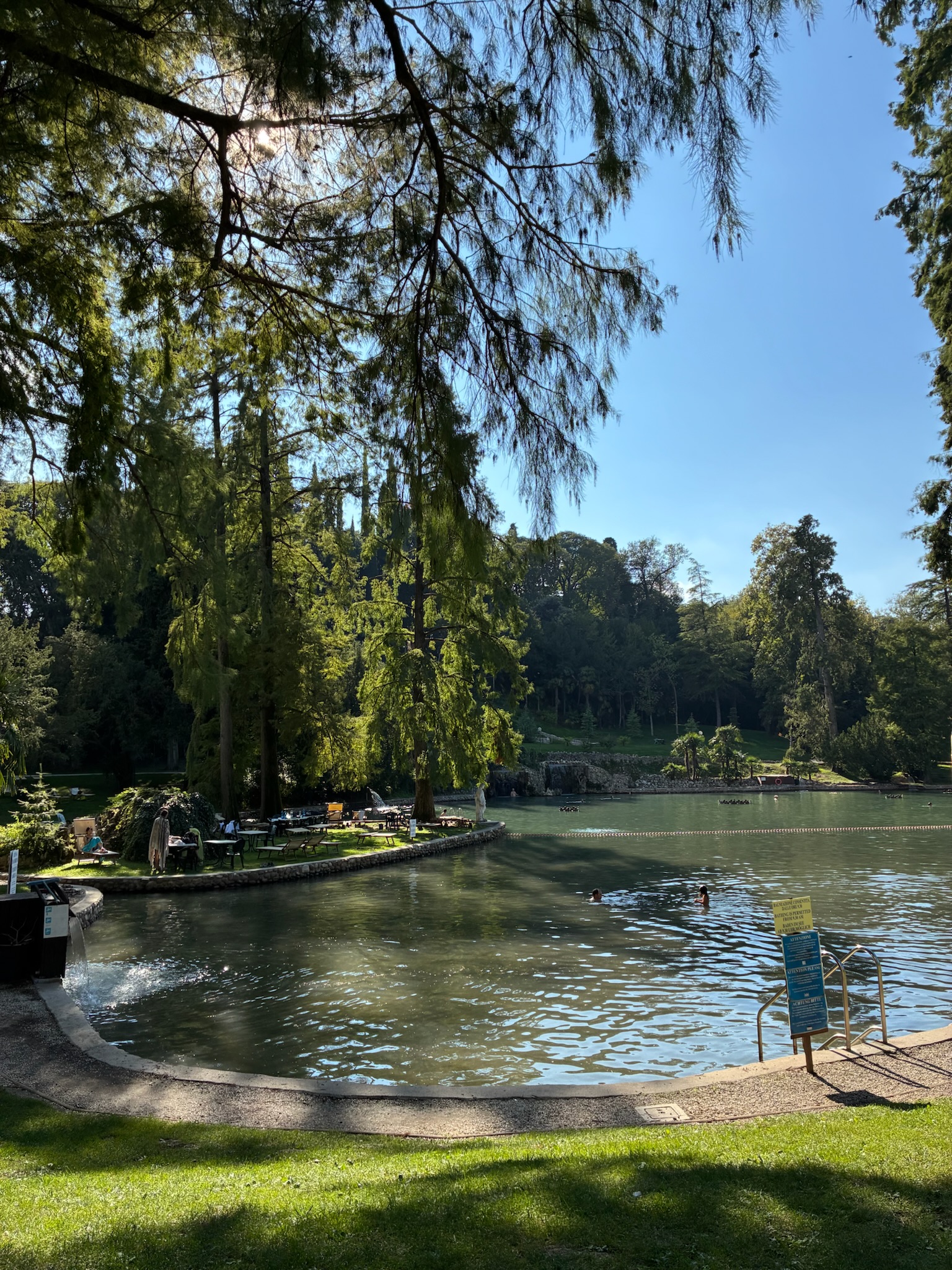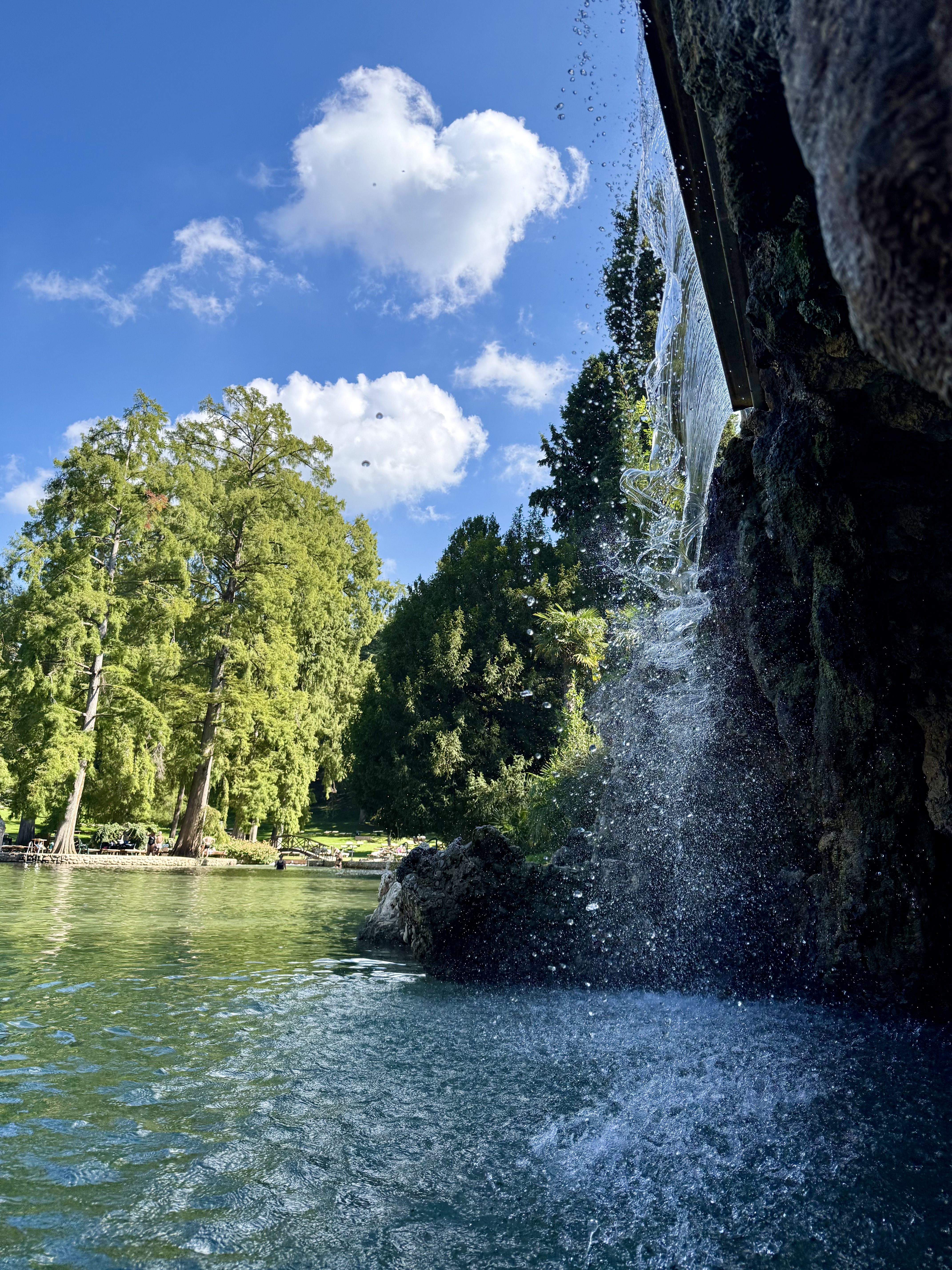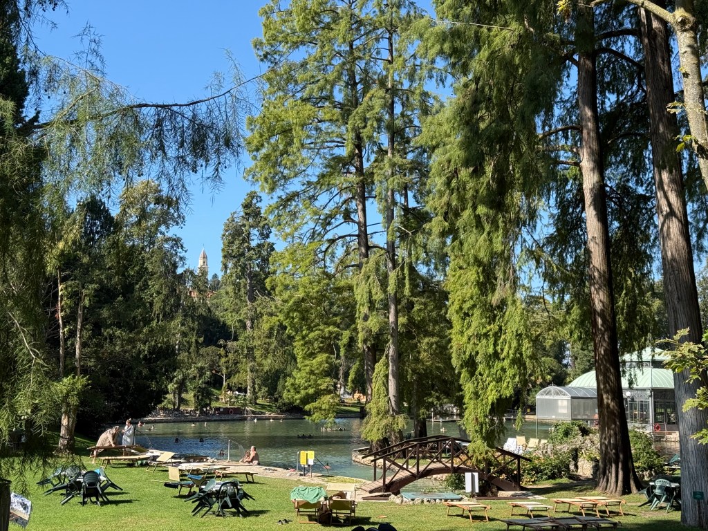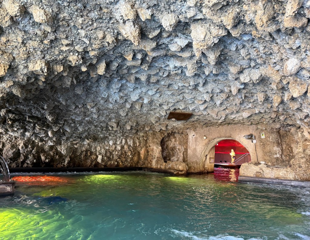 For our last full day in Italy, we thought it would be fun to visit a hot springs park. Parco Termale del Garda featured a large “lake” with a large manmade cave, both of which are in the middle of a public park. The lake itself is cool, but there are contained areas, like hot tubs, that had hot water. These hot spring parks are popular with families and I can see why! One really interesting thing is the cafeteria food; unlike American cafeteria / concession food, which largely consists of such delicacies such as burgers, fries, hotdogs, and nachos, Italian cafeteria food is….amazing. Fresh pasta, salad bar, fresh fruit, pastries….