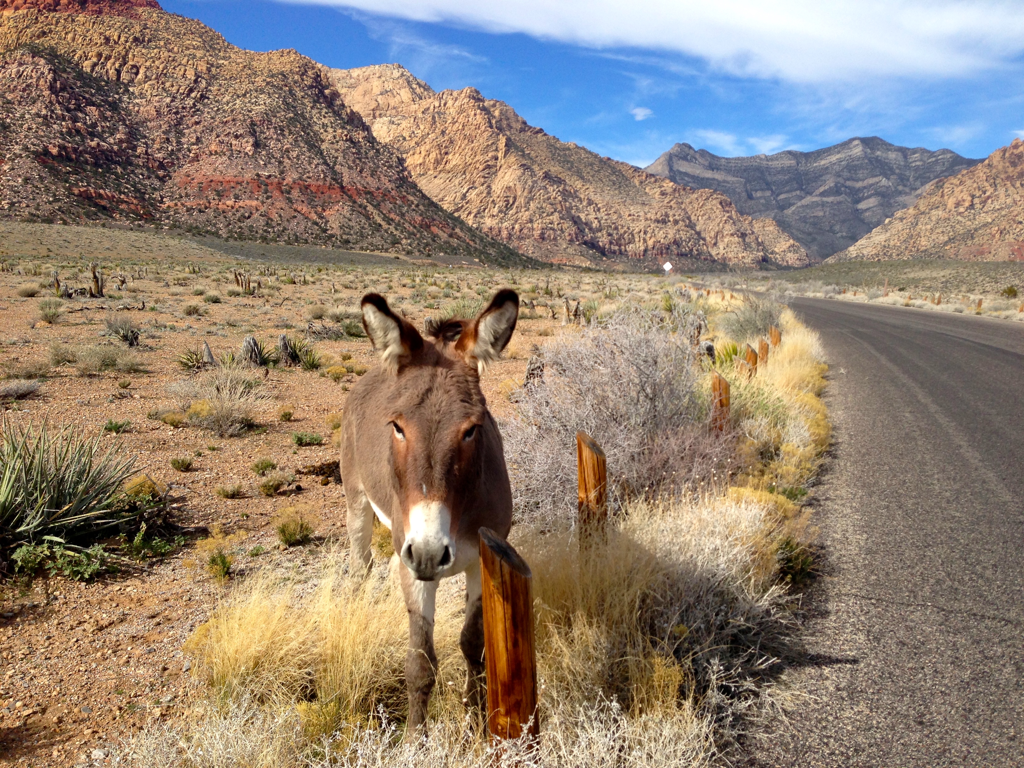 In the meantime, I want to share a few pictures of the burros I spotted on my ride yesterday morning. I elected to do the Red Rock loop (again!) and just before mile marker 10, I saw these 2 burros happily munching on grass and just enjoying the sunshine: