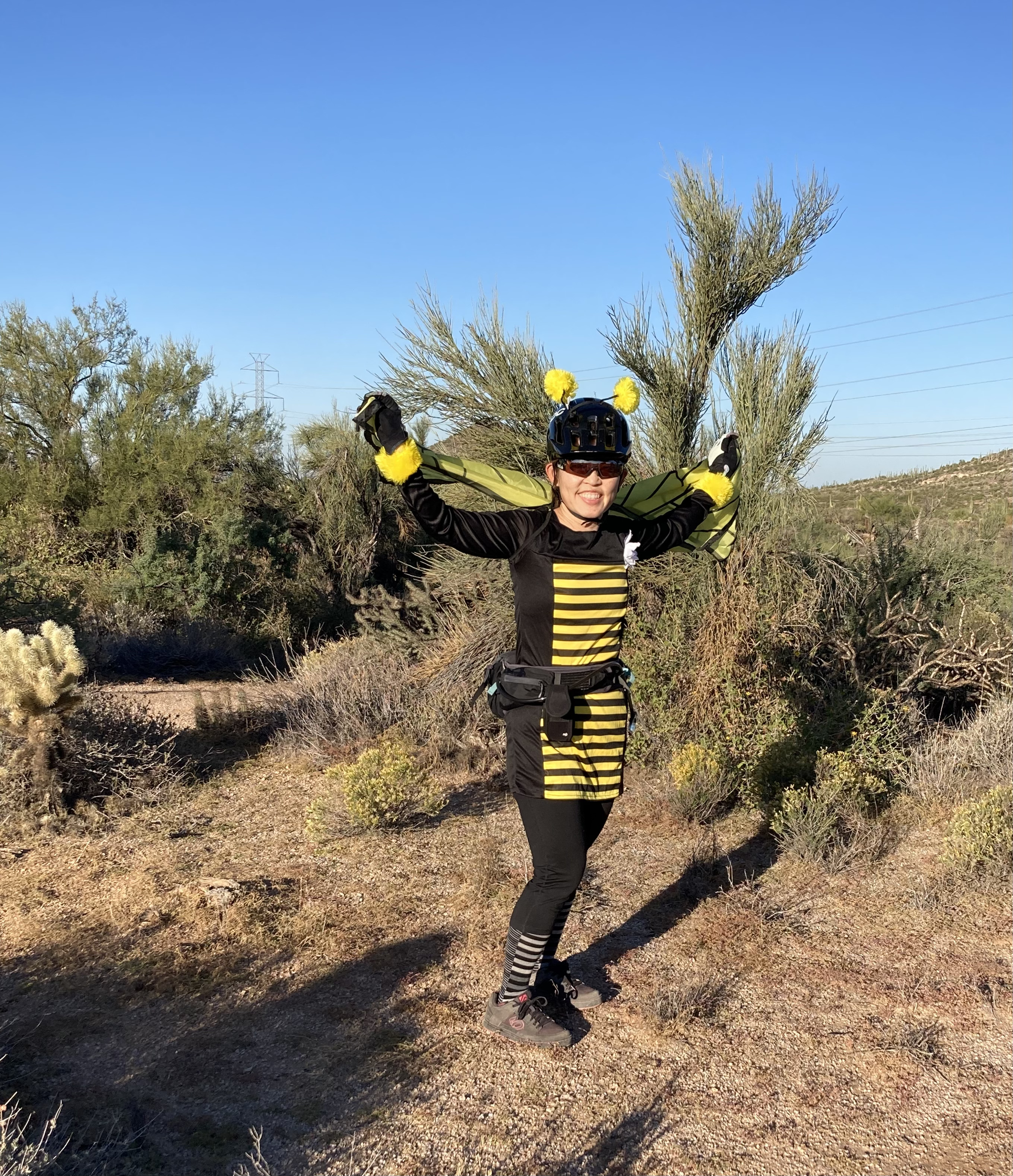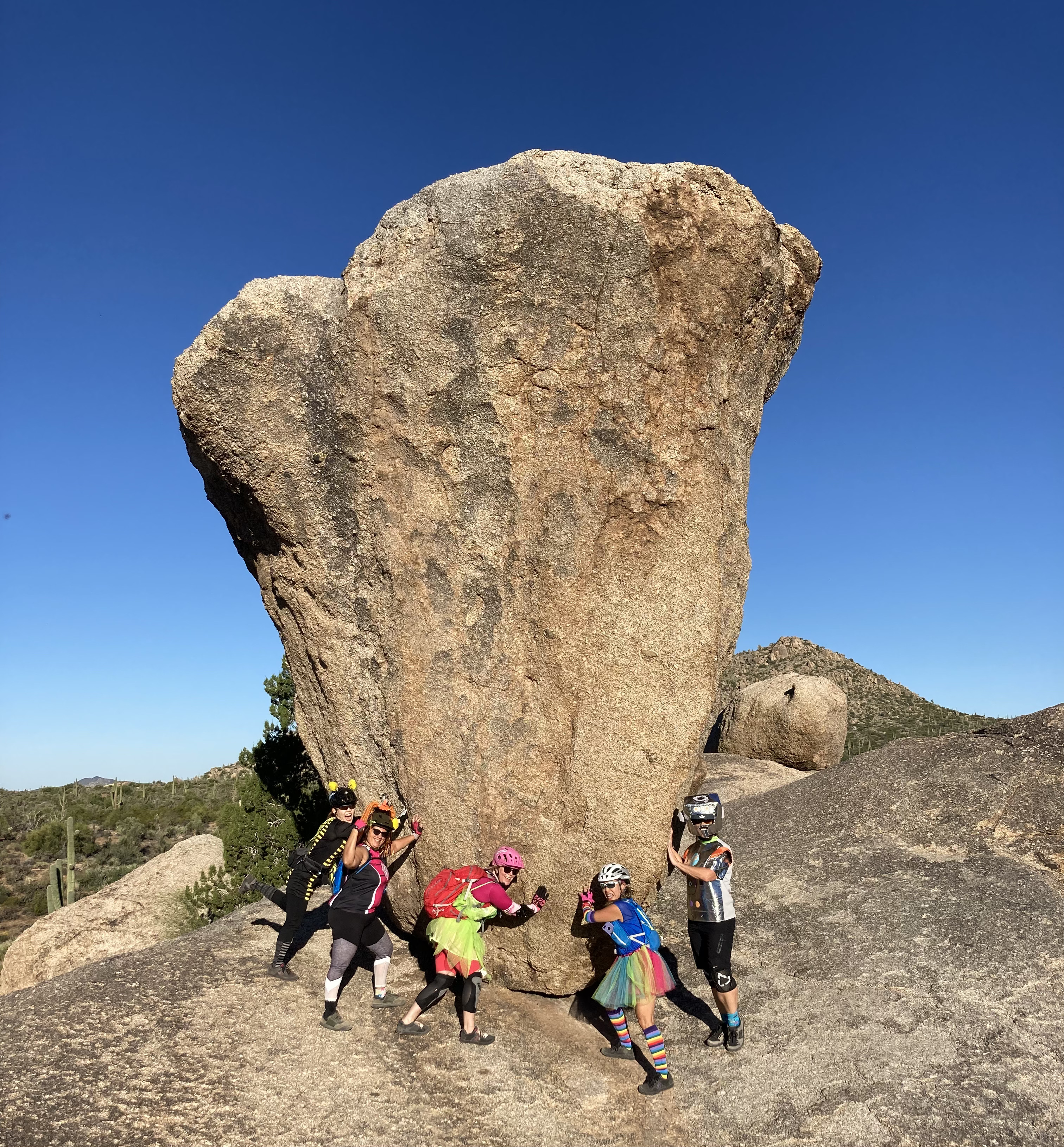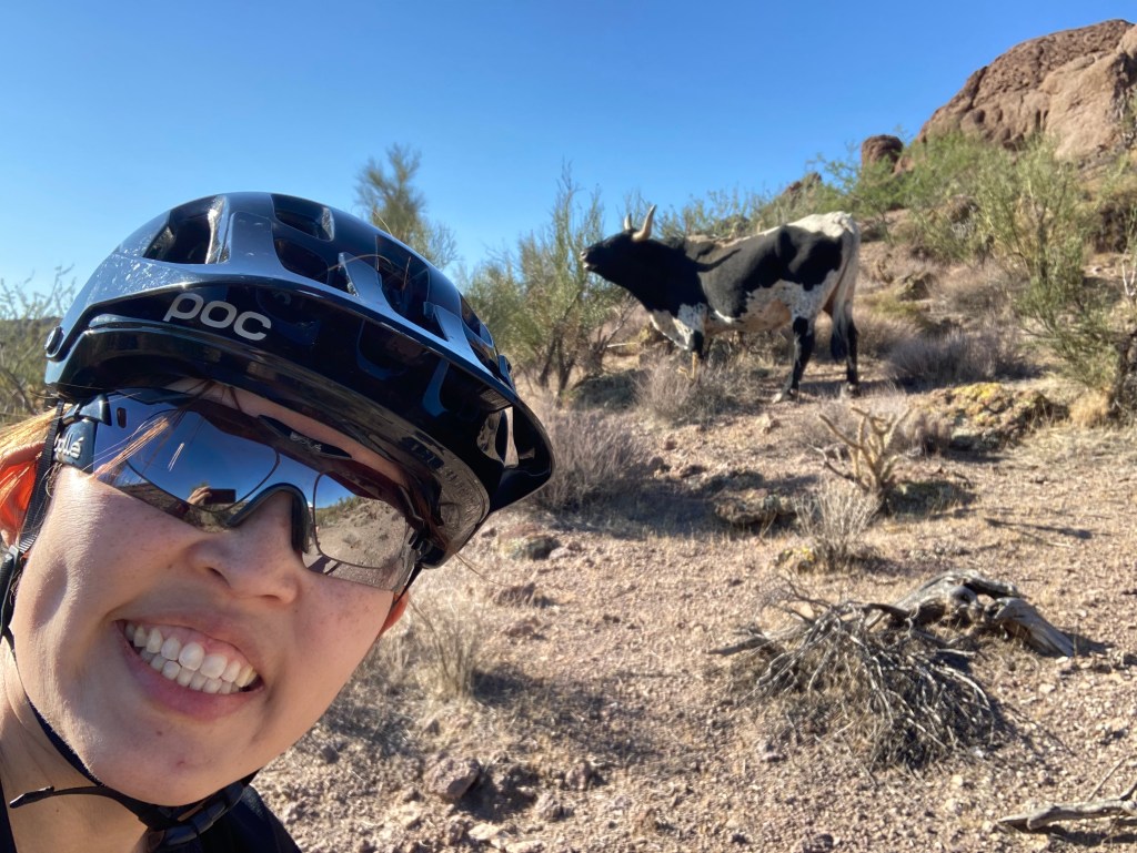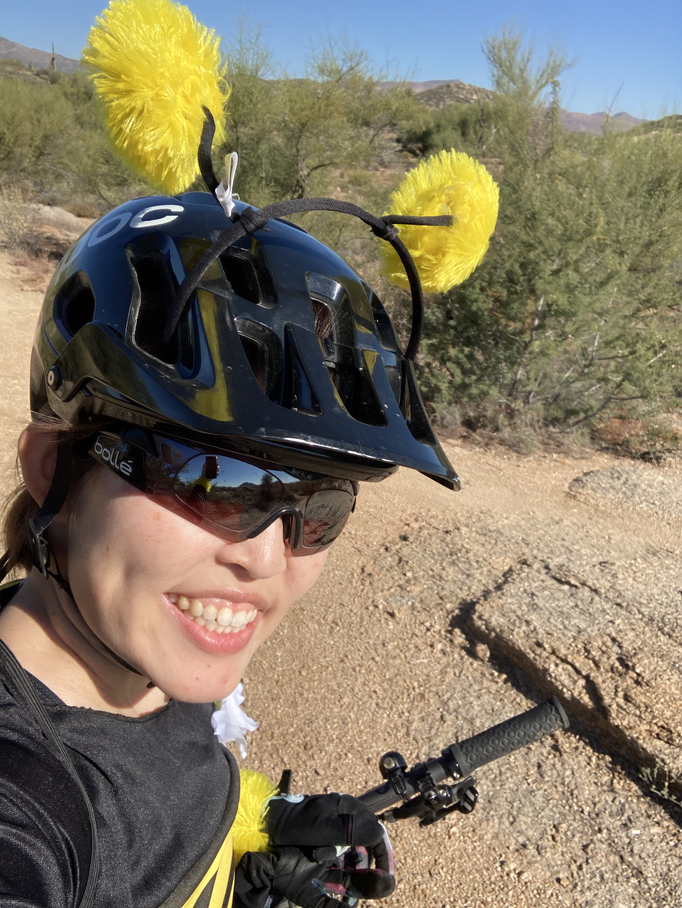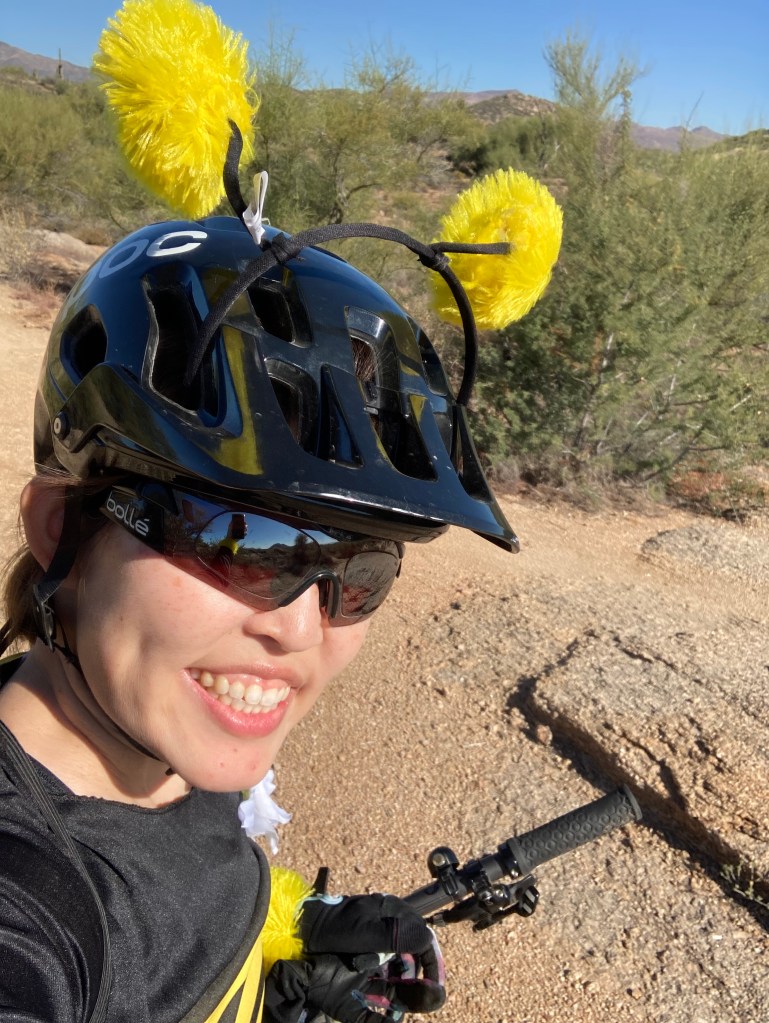 One thing I started doing this fall is lead a weekly ladies’ beginner ride at South Mountain. I’m part of a Phoenix-area ladies’ mountain biking group and was riding so much that the group leaders noticed and asked if I would like to be a ride leader. Of course I said yes! I’ve had a lot of fun meeting new ladies and showing them some things I’ve learned since I started working on my riding skills last year. In addition to my weekly rides, I plan on organizing longer weekend rides every so often. Today, I led a Hallowe’en-themed ride at Browns Ranch and my little group had a great time enjoying the scenery and taking lots of fun photos.