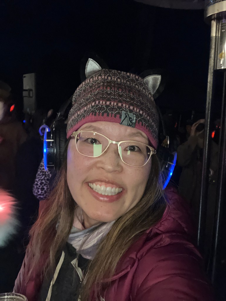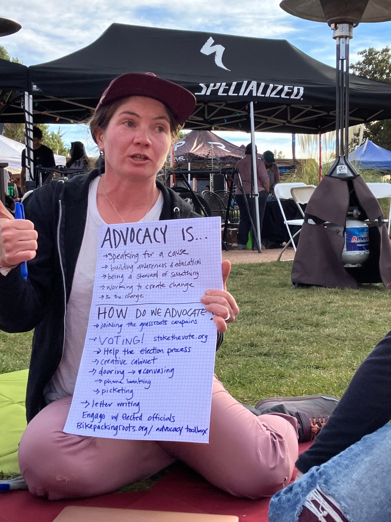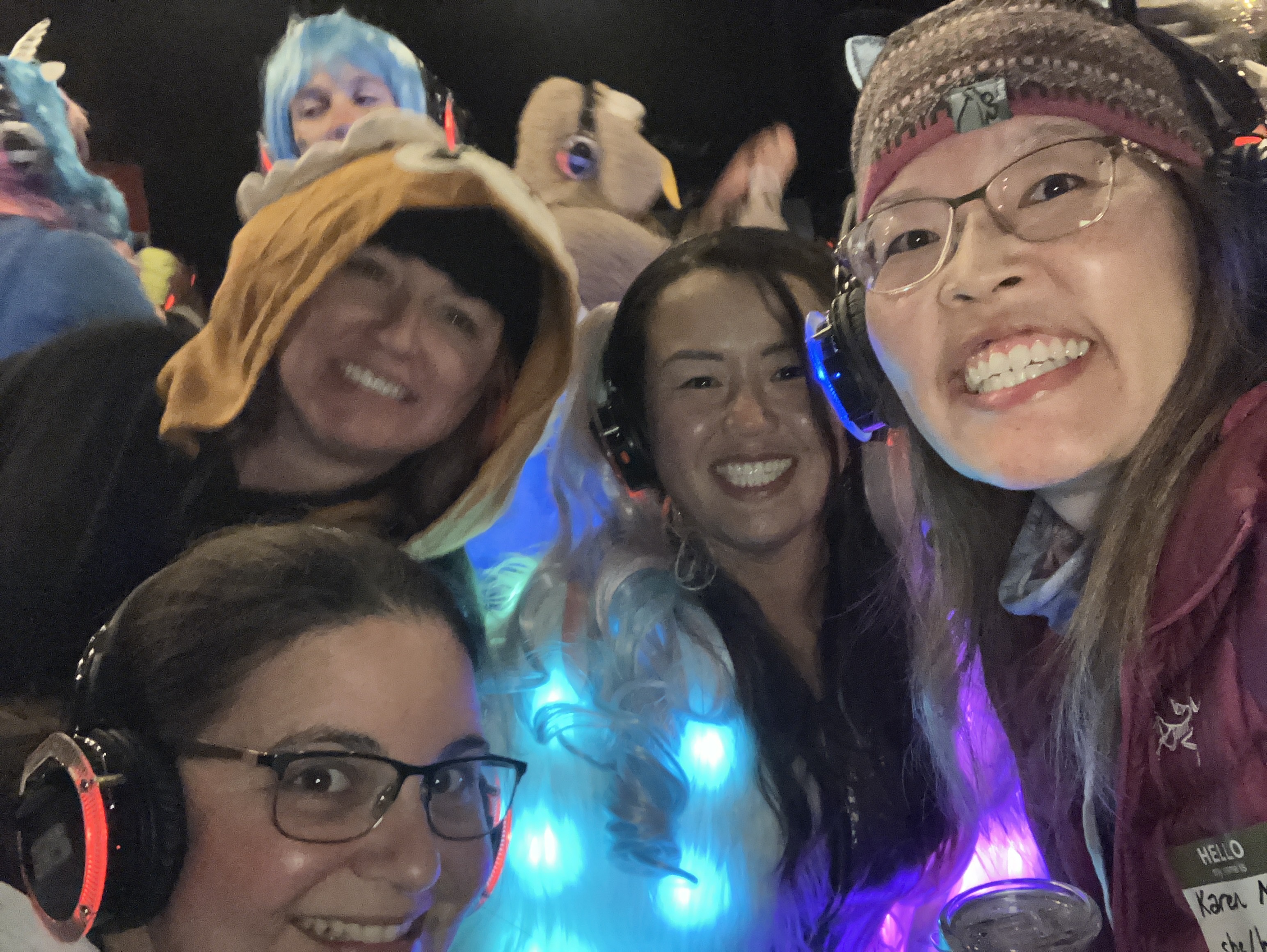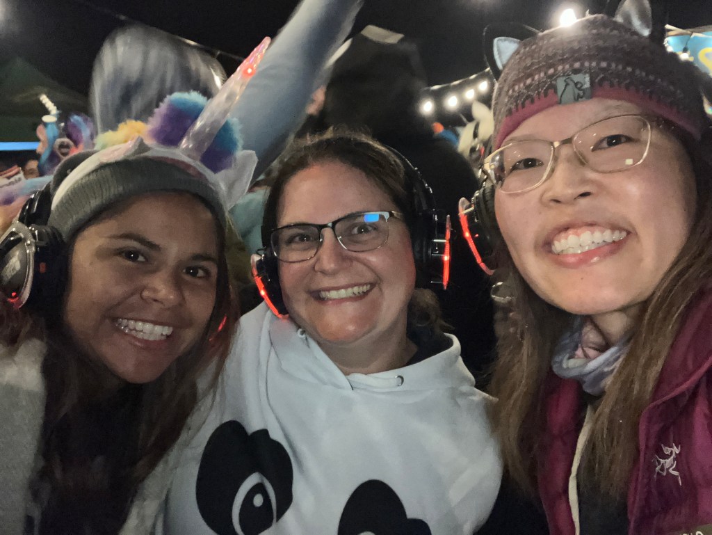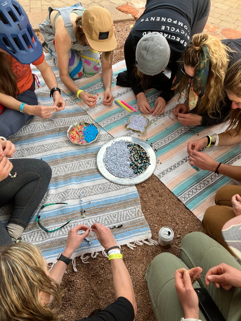 The non-biking activities I participated in included a climate advocacy discussion, a bracelet making session, and a silent disco. The disco is one of the funniest group activities I’ve ever done! Everyone had their own headphones, which connected to 2 different music playlists. You chose the song you wanted to dance to. When I took my headphones off, it was hilarious to hear the (somewhat off-key) singing of all the ladies, but no actual music recording. Most of the group wore costumes, which added to the fun.