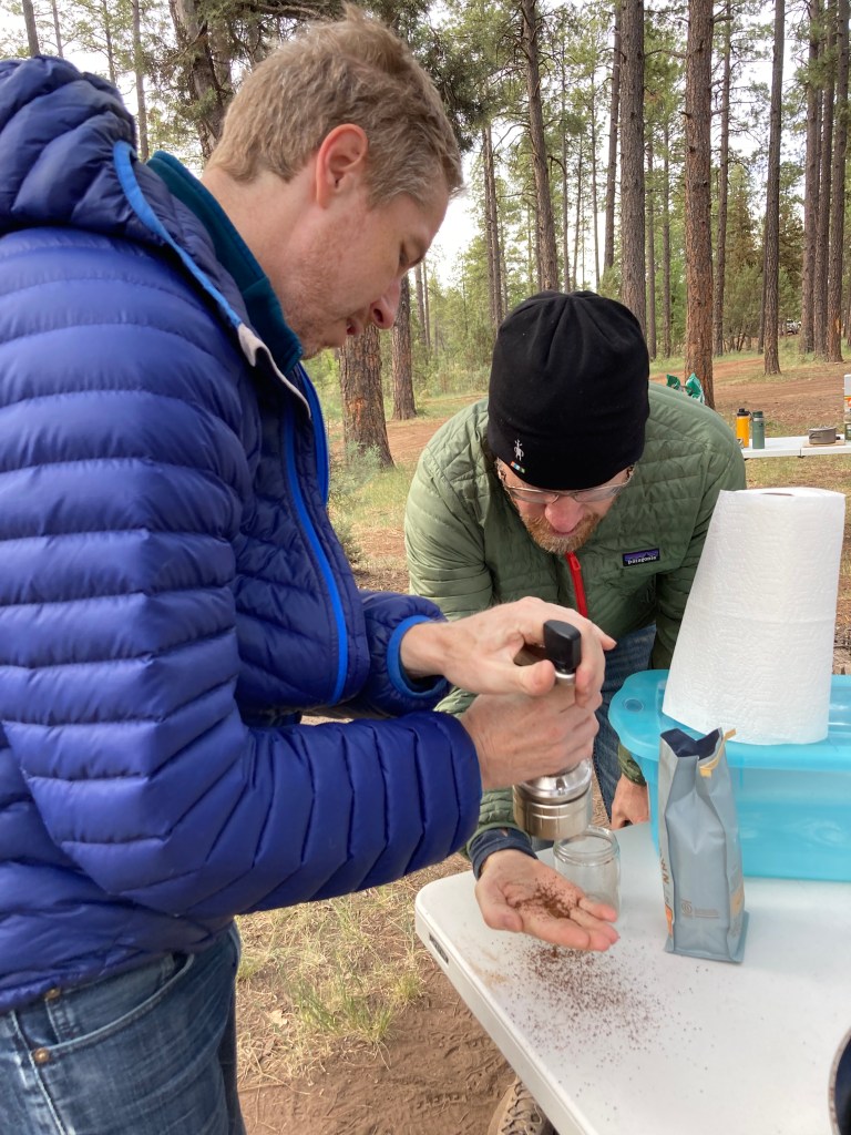 Watching the cows from inside the truck bed!My SAT and Ian measuring and hand-grinding their coffee beans. Addicts unite!Ian made quiche! Very fancy (and yummy).
