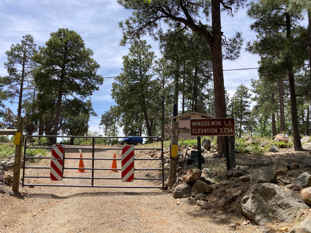 Both my SAT and I took Friday off work and we spent a few hours in the morning packing and getting the last details in place before heading out. When we left at around 11am, my GPS said that there was a crash a bit north of us on the I-17. Therefore, we decided to take the scenic route through Yarnell and Prescott to Mingus. Neither of us had taken that route to Prescott before and were pleasantly surprised at how pretty the drive was. We were enjoying the lush trees (yes, in Arizona!) and charming ranch houses so much that we neglected to take pictures. I’m guessing that all of the green is due to the multiple springs in the area, marked by signs indicating “Hidden Springs,” or “Iron Springs,” etc.