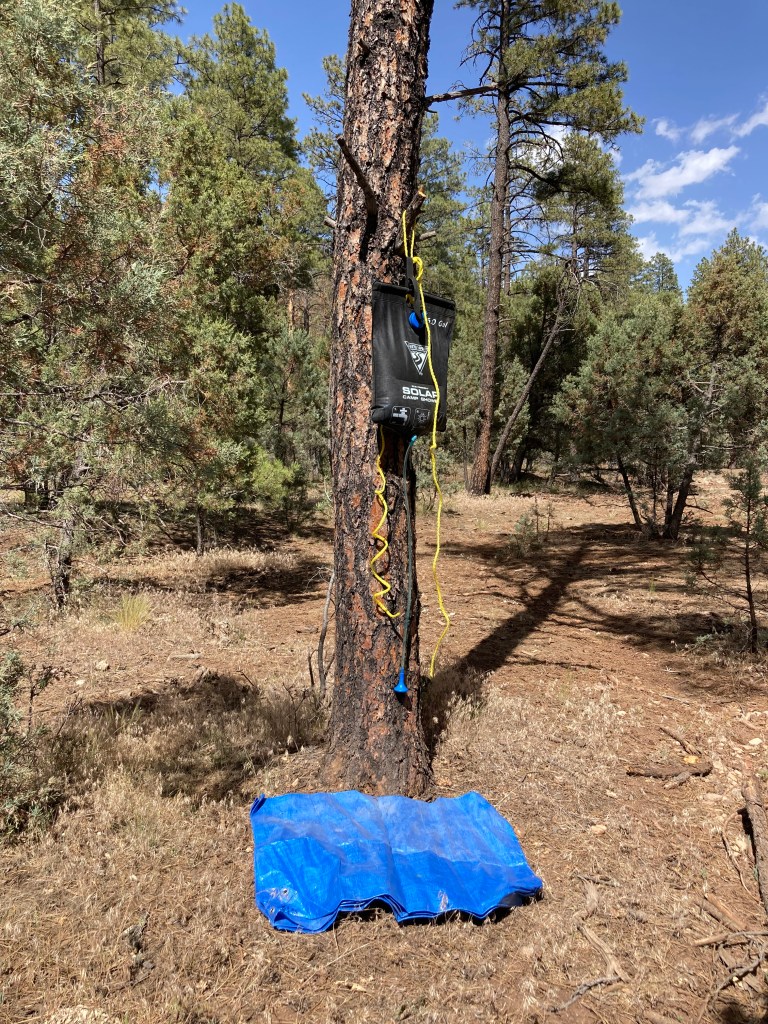 We arrived at the dispersed camp area around 2:30pm. (We decided to disperse camp rather than stay at the Mingus Mountain campground because our friends were bringing their dogs and the campground wouldn’t be conducive to letting the dogs roam freely.) After driving up and down the gravel road, we staked our claim to a large, lovely, tree-covered campsite. We had to drive up the gravel road about 5 minutes to get enough cell reception to text our friends the campsite location; we were going “off the grid” this weekend!